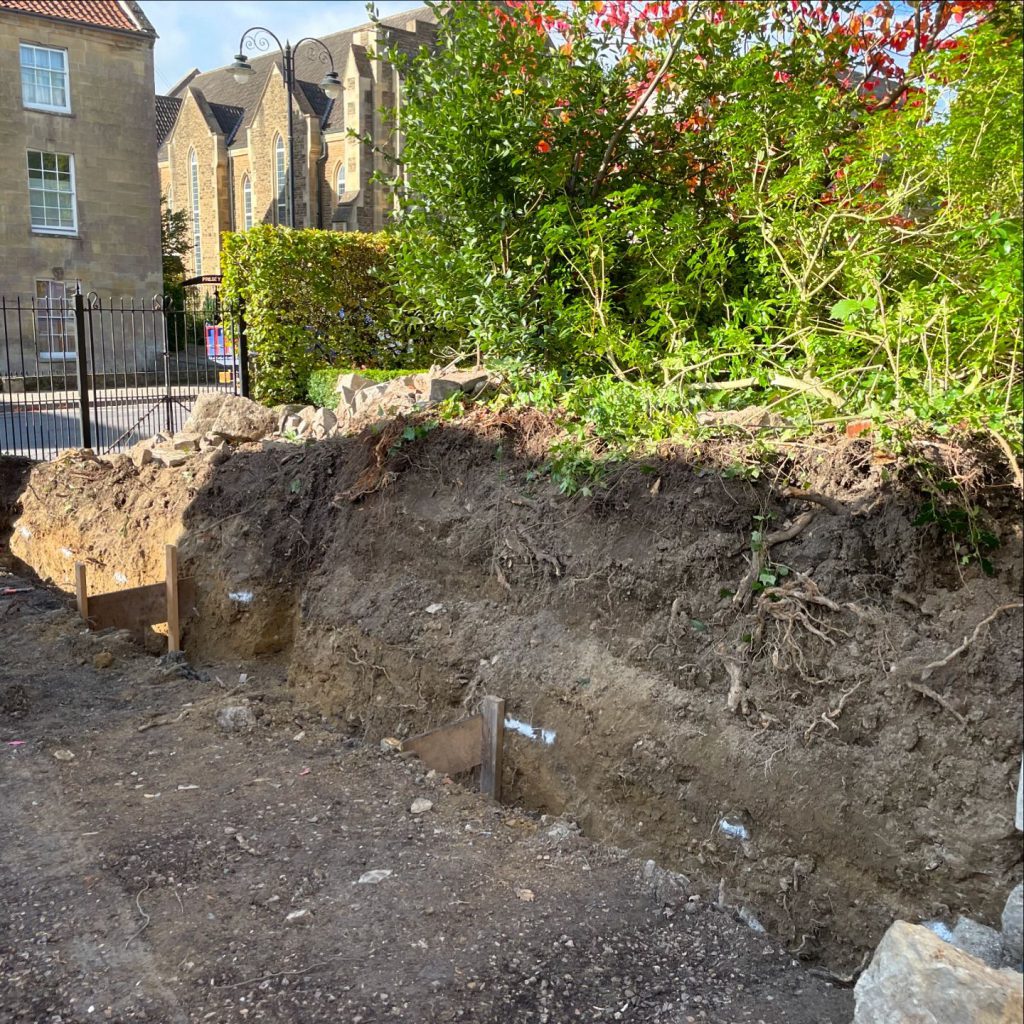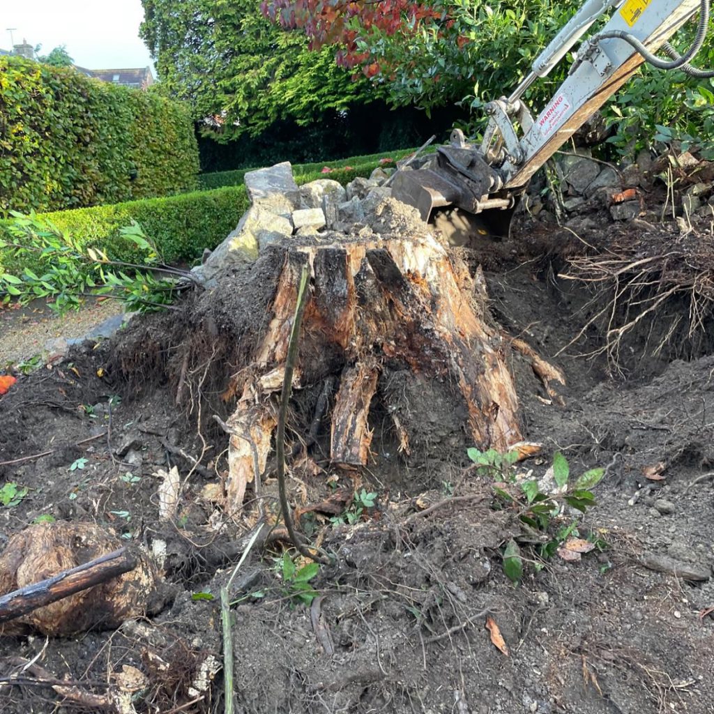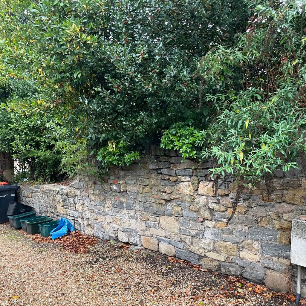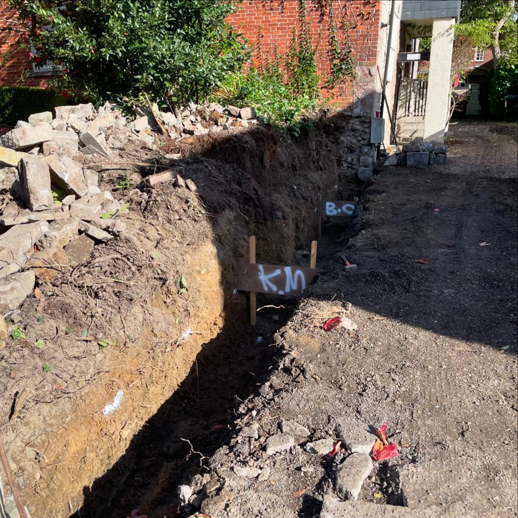 The recent project involved the removal of a tree that was impacting the structural integrity of an existing stone wall. Following tree removal, careful excavation work commenced to prepare for the rebuilding of the wall on a more stable foundation. Trenches were meticulously dug to accommodate new footings, ensuring that the wall would be adequately supported and resistant to future movement. This crucial step involved careful consideration of soil conditions and the weight of the wall itself. The excavated trenches were then prepared to receive the new footings, laying the groundwork for the subsequent stages of the wall rebuilding process. This thorough approach ensures the longevity and stability of the newly constructed wall, enhancing the property’s aesthetics and structural integrity.